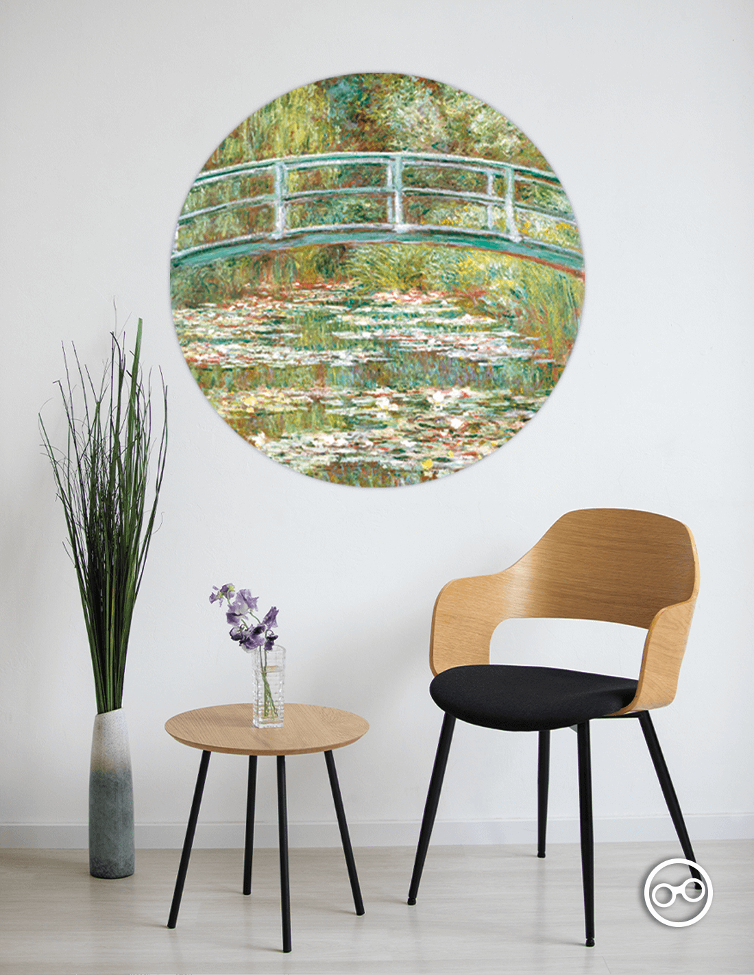 Behangcirkel Brug over een Vijver met Waterlelies straks bij jou aan de muur?