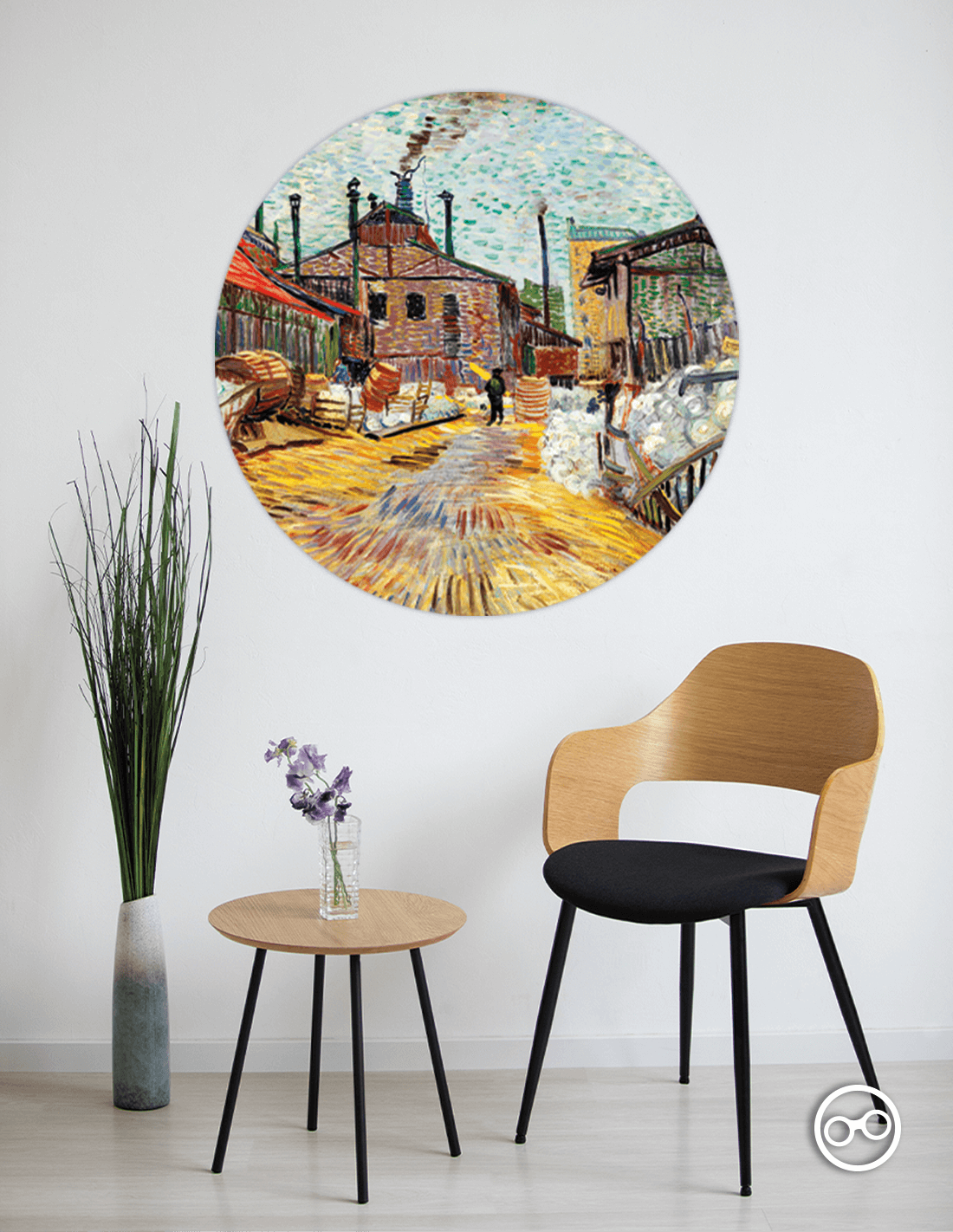 Deze behangcirkel is een stijlvolle toevoeging aan ieder interieur. Een behangcirkel is gemaakt van zelfklevend polyester. Door de matte afwerking doet dit materiaal sterk aan textiel denken. Hierdoor heeft dit fotobehang een unieke uitstraling die andere materialen zoals posters of stickers niet kunnen evenaren. De Behangcirkel De Fabriek is tot 100 cm diameter te bestellen.