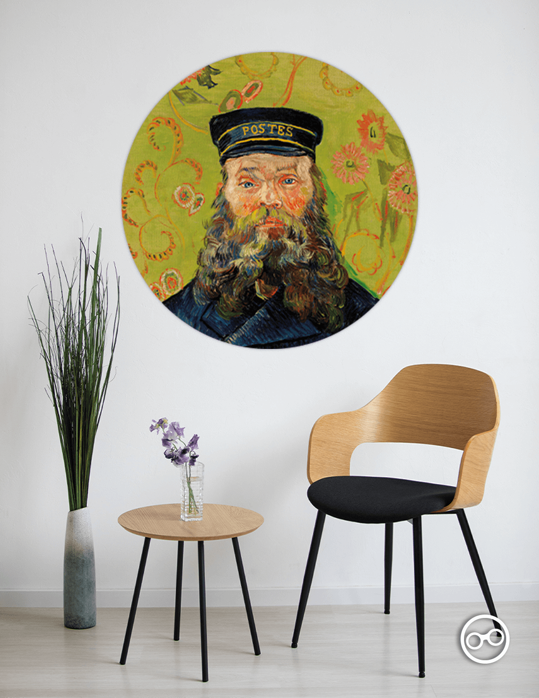Deze behangcirkel is een stijlvolle toevoeging aan ieder interieur. Een behangcirkel is gemaakt van zelfklevend polyester. Door de matte afwerking doet dit materiaal sterk aan textiel denken. Hierdoor heeft dit fotobehang een unieke uitstraling die andere materialen zoals posters of stickers niet kunnen evenaren. De Behangcirkel De Postbode is tot 100 cm diameter te bestellen.
