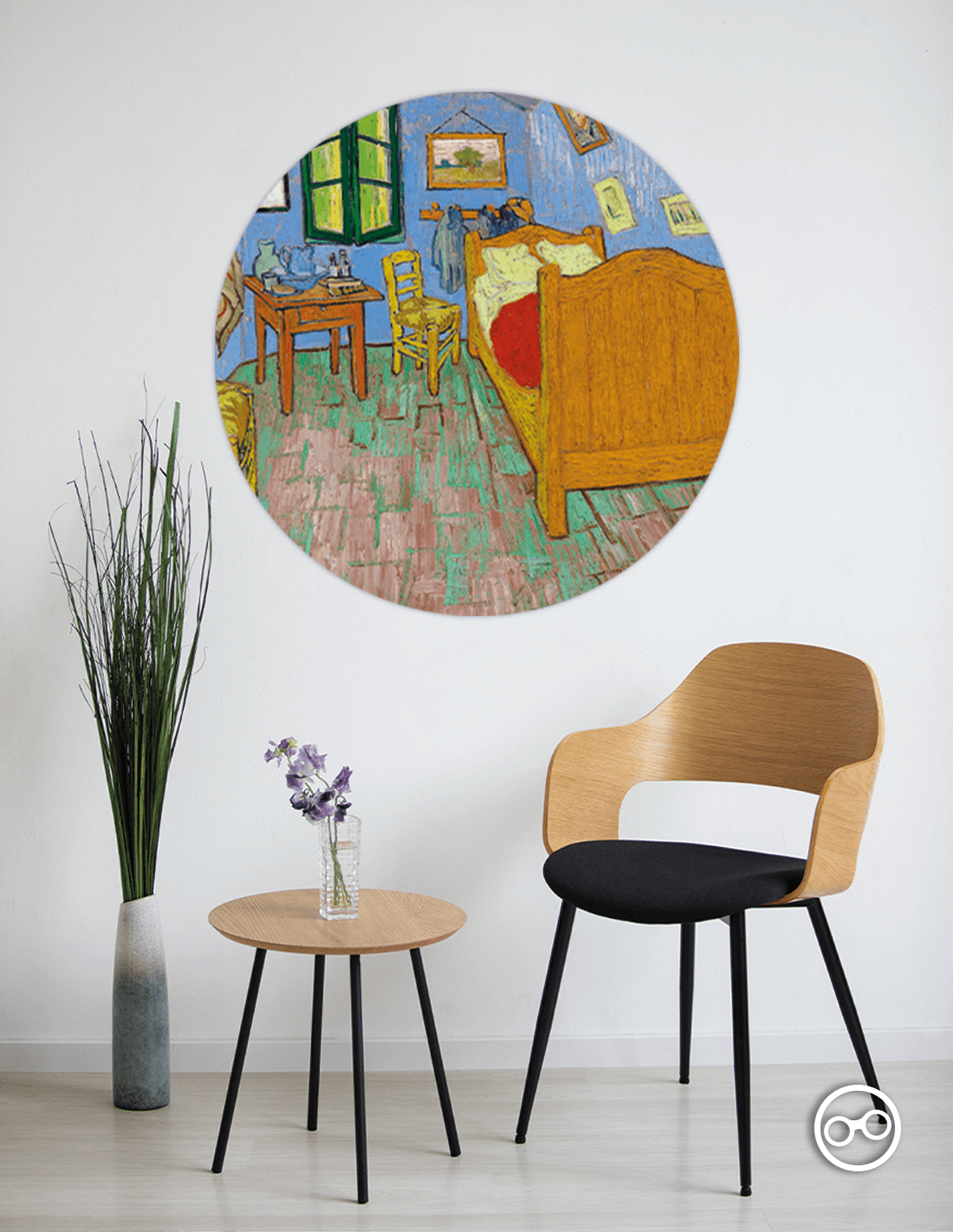Deze behangcirkel is een stijlvolle toevoeging aan ieder interieur. Een behangcirkel is gemaakt van zelfklevend polyester. Door de matte afwerking doet dit materiaal sterk aan textiel denken. Hierdoor heeft dit fotobehang een unieke uitstraling die andere materialen zoals posters of stickers niet kunnen evenaren. De Behangcirkel De Slaapkamer is tot 100 cm diameter te bestellen.