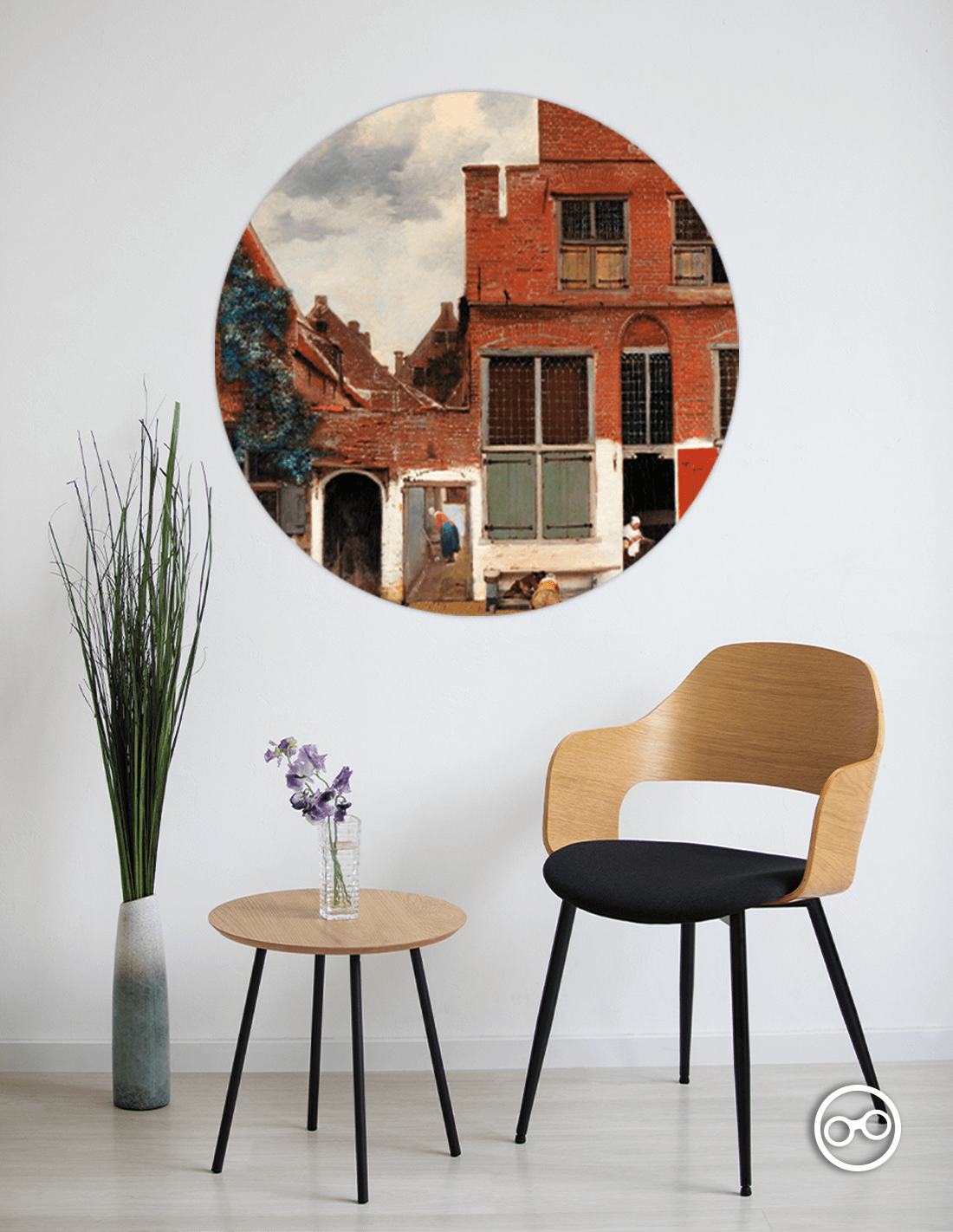 Deze behangcirkel is een stijlvolle toevoeging aan ieder interieur. Een behangcirkel is gemaakt van zelfklevend polyester. Door de matte afwerking doet dit materiaal sterk aan textiel denken. Hierdoor heeft dit fotobehang een unieke uitstraling die andere materialen zoals posters of stickers niet kunnen evenaren. De Behangcirkel Het Straatje is tot 100 cm diameter te bestellen.