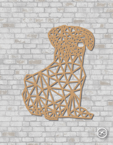 Breng een speels en stijlvol accent in huis met de geometrische hond wanddecoratie van Stickermaster. Verkrijgbaar in zwart MDF, bruin MDF of linoply, met een dikte van 9mm en precies lasergesneden voor een moderne 3D-look. Het geometrische ontwerp geeft diepte en karakter aan elke muur. Verkrijgbaar in verschillende formaten en ideaal als decoratie in de woonkamer, kinderkamer, kantoor of als origineel cadeau voor hondenliefhebbers.