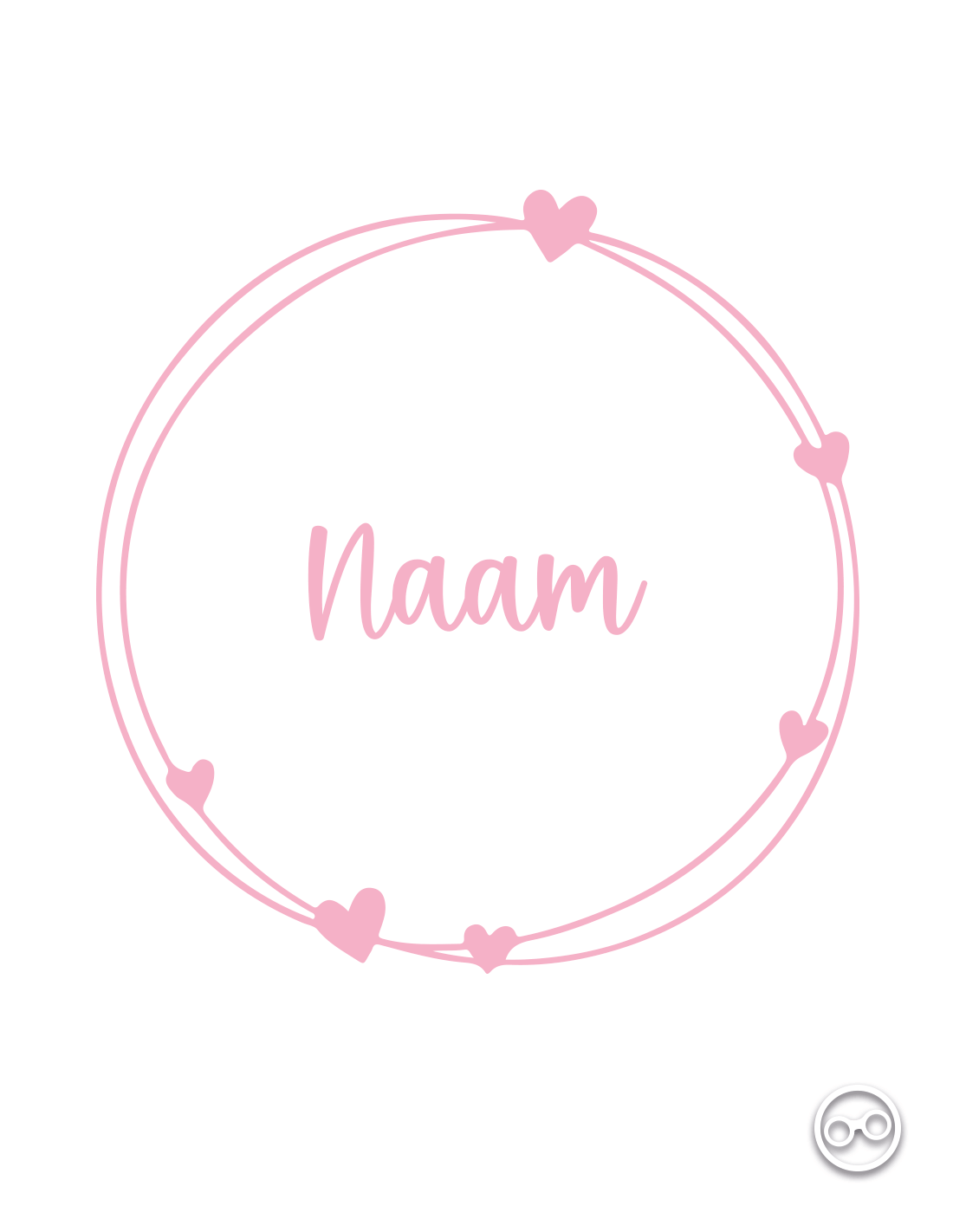 De sticker wordt niet geprint maar uitgesneden uit kwalitatieve roze vinylfolie. Hierdoor heeft de sticker geen achtergrond: alleen de naam in het ronde ontwerp blijft zichtbaar. Het resultaat is strak, duurzaam en elegant.