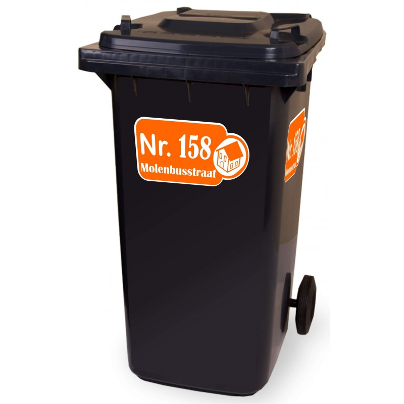 Je kan deze sticker bestellen voor een 120 en voor een 240 liter vuil container.