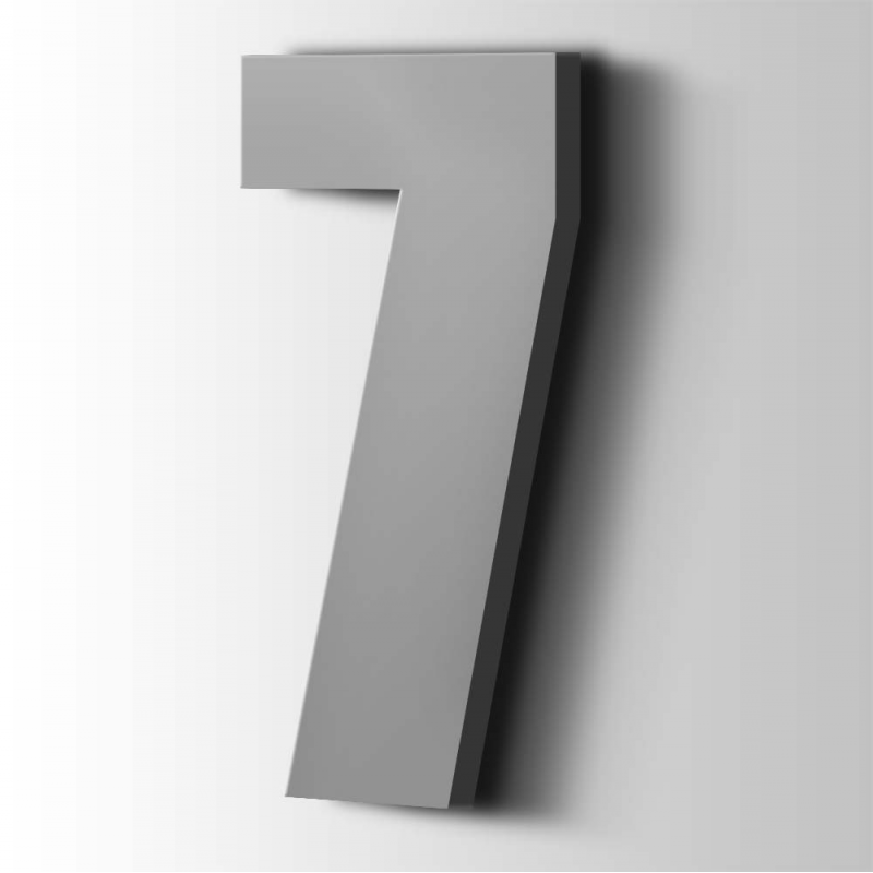 Kunststof Cijfer 7 in het lettertype Lettertype: Impact gemaakt van Materiaal: Acrylaat in de kleur: Grijs 7040 Window Grey Het gaat hier om Kunststof Cijfer 7 Impact Acrylaat 7040 Window Grey uitgefreesd met een speciale laser.