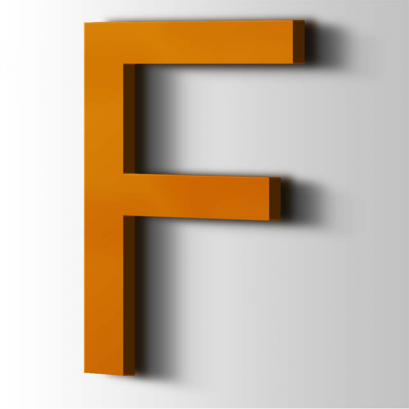 Kunststof Letter F Arial Acrylaat 2004 Pure Orange