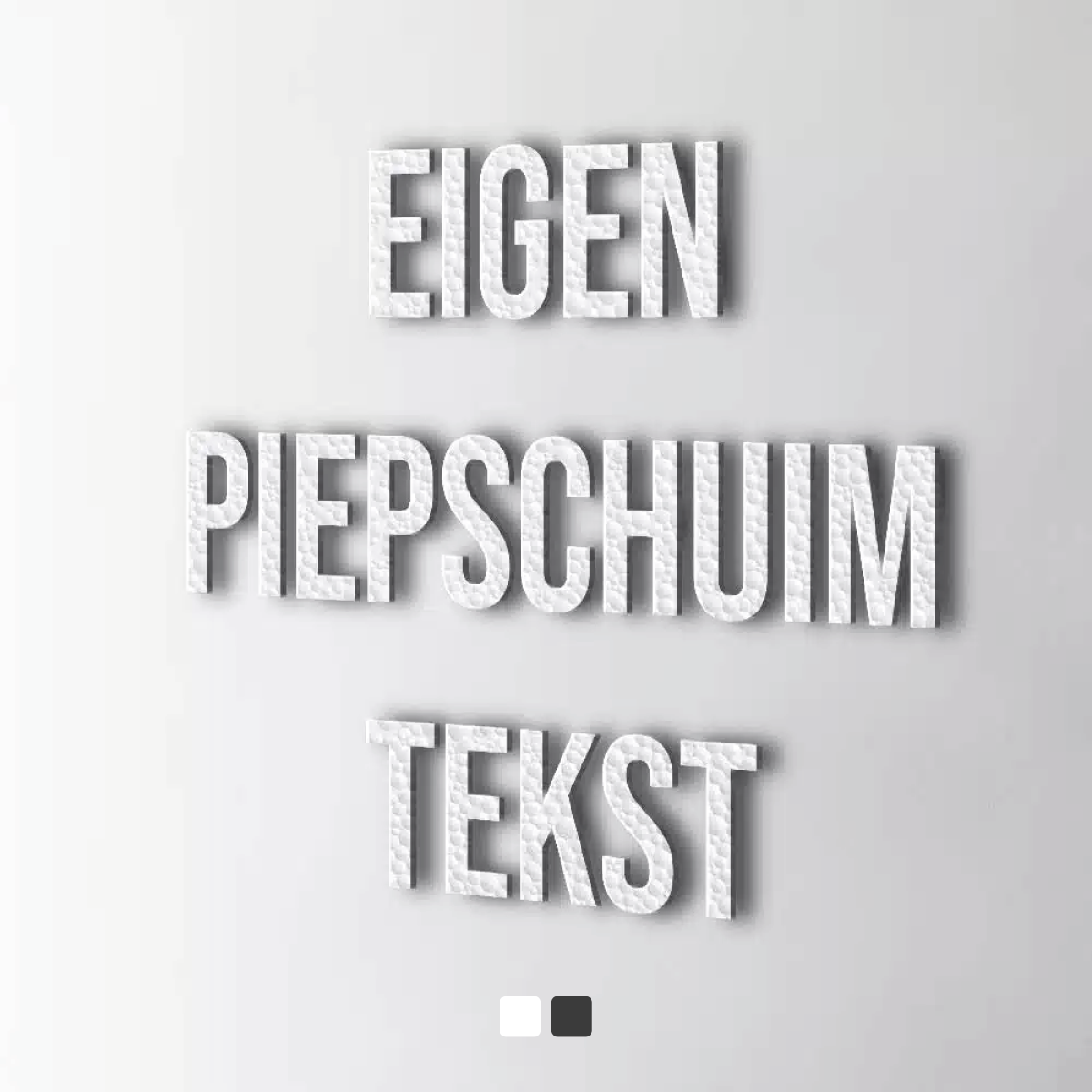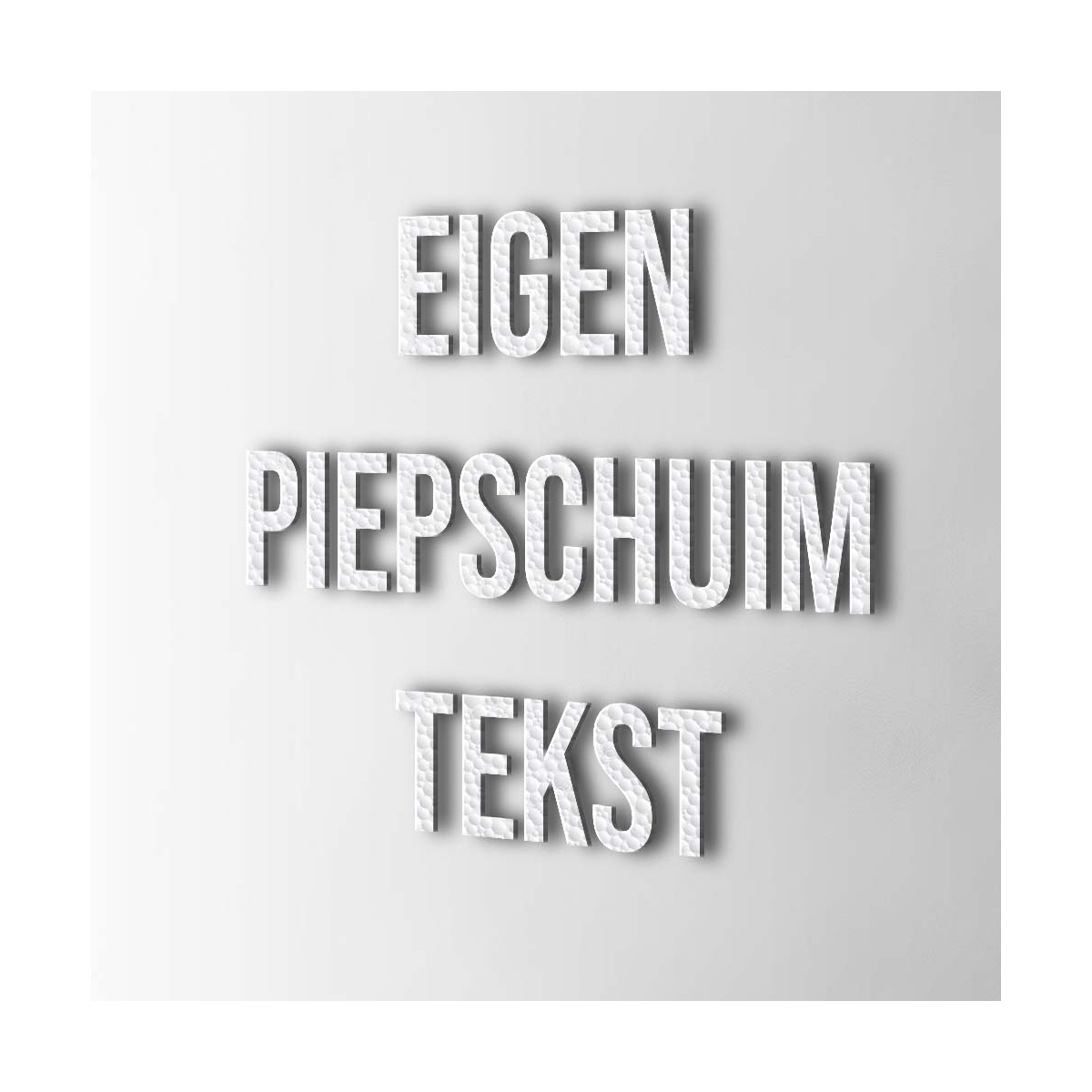 Je ontwerpt zelf een tekst die uit piepschuim wordt gesneden. De letters kunnen los geleverd worden of als één geheel, afhankelijk van het ontwerp. Door de dikte ontstaat er diepte, waardoor de tekst niet alleen leesbaar is, maar ook fysiek aanwezig in de ruimte.